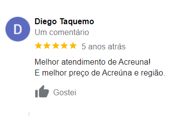 Entrega em toda região de Acreúna, zona rural e entorno.